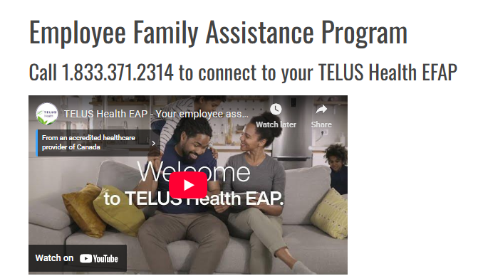 In partnership with service provider TELUS Health, employees have 24-hour-a-day anonymous access to a wide variety of professional support resources and tools. By visiting the EFAP page on 3sHealth’s website, employees can get a better sense of how they can be supported when dealing with a broad range of family, health, money, work, and other issues. Materials provided include everything from videos, expert Qs and As, podcasts, and much more.